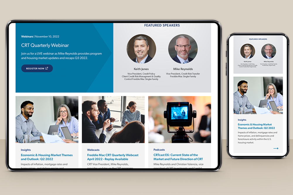 The Credit Risk Transfer website (CRT) underwent a crucial migration to the Drupal CMS, aligning its design components and user experience with Freddie Mac's enterprise standards. Collaborating with the product owner, I conducted a comprehensive evaluation of all content and web pages to ensure a seamless transition to the Drupal platform. This migration not only empowered the CMS development team to efficiently manage CRT web pages but also facilitated the retirement of the legacy CMS platform, resulting in cost savings and reduced technical risks.